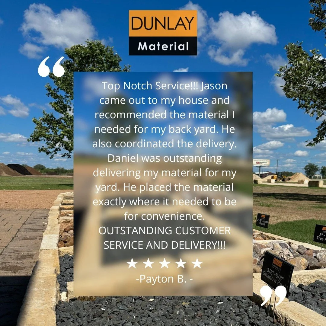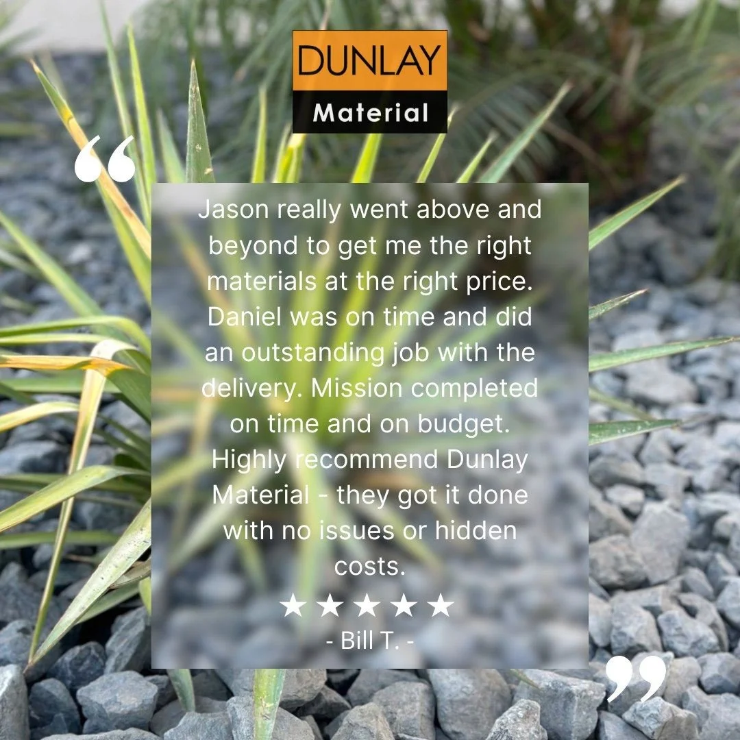 As a trusted name in the landscape material industry, Dunlay Material is dedicated to providing top-notch products and exceptional customer service. We pride ourselves on having friendly and knowledgeable Team members who go above and beyond to provide solutions tailored to each client's specific needs. Dunlay Material is committed to making your outdoor projects as stress-free as possible. Online ordering allows you to conveniently browse our wide selection of Base, Rock, Mulch, and Soil and place your order from anywhere at anytime! We understand that time is valuable for both homeowners and contractors, which is why we offer fast delivery services for all orders. We look forward to creating a lasting relationship with you and assisting with all your landscape material needs!